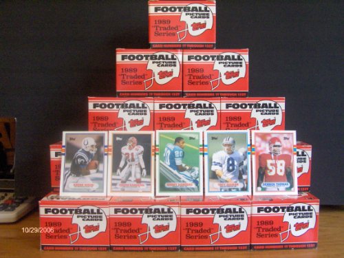 1989 Topps Traded Football Factory Complete Set (1-132).(Set has never been opened, cards in scan are from another set) This Set Contains Rookie cards such as Troy Aikman, Barry Sanders, Deion Sanders, Andre Rison, Derrick Thomas, Jim Harbaugh, Flipper Anderson, Dave Meggett, Steve Tasker, Don Beebe, Eric Metcalf, Rodney Peete, Frank Reich, Steve Walsh, Greg Lloyd and more.