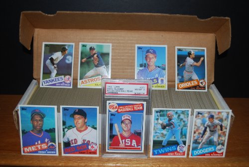 1985 Topps Complete Set (726 Cards) Well designed and very colorful...Key Rookie Cards in this set are Mark McGwire(Graded a PSA 8) McGwire is the only graded card in this set....Other Key Rookie Cards are Roger Clemens, Kirby Puckett, Bret Saberhagen, Dwight Gooden, Orel Hershiser, Eric Davis, Terry Pendleton, Shawn Dunston...Plus all the Superstars of the day..Ripken, Gwynn, Sandberg, Schmidt, Rose, Brett, Yount, Mattingly, Strawberry, Henderson, Ryan, O.Smith and More....Cards are Near-Mint to Mint and Clean