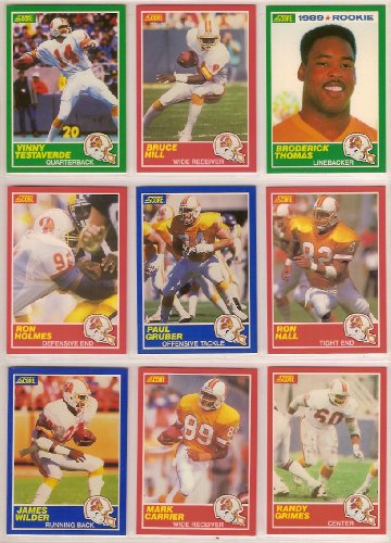 1989 Score Tampa Bat Buccaneers Team Set ....Featured are Vinny Testaverde, Bruce Hill, Broderick Thomas (RC), Ron Holmes, Paul Gruber, Ron Hall, James Wilder, Mark Carrier, Randy Grimes......... .Cards are Near-Mint to Mint or Better and Clean....